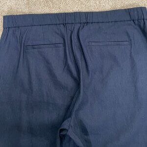 J. Jill Linen Stretch NEW Linen Blend Crop Cuff Pull On Pants Size L Navy Blue