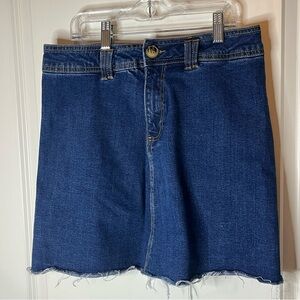 Classic style denim skirt with distressed hem. Pulled thread as seen in pic 11, easy to cut out.