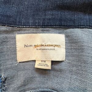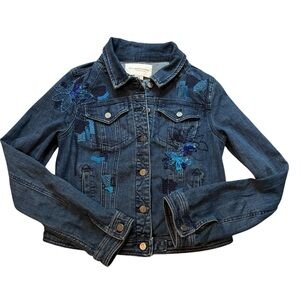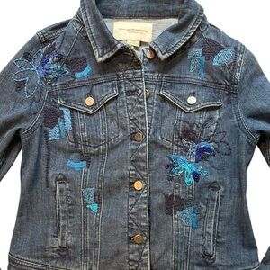 Pilcro Anthropology beautiful beaded and embroidered denim jacket. Slight cropped in back and longer in front