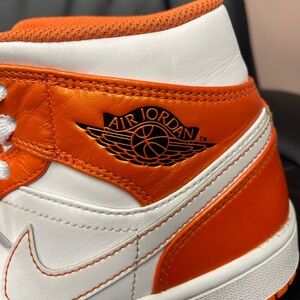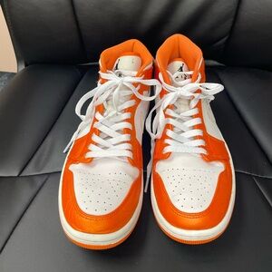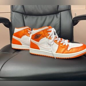 Nike Air Jordan 1 Mid Electro Metallic Orange White Sneaker M 7.5 W 9