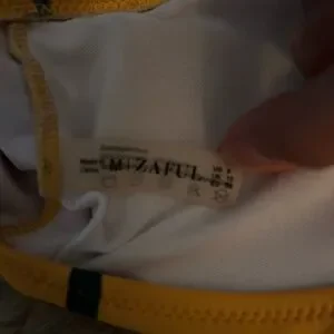 Bright yellow bikini top with cactus print. Strapless design. Perfect for summer vibes.