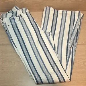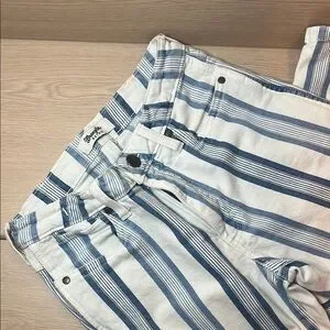 Blue and white stripe wrangler jeans . Two small spots on it as pictured on leg of jean .