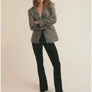 This striking blazer from Favorite Daughter features a bold black and white houndstooth pattern, offering a timeless and sophisticated look. Its tailored design and medium-weight fabric make it an ideal choice for cooler weather, ensuring both style and comfort.