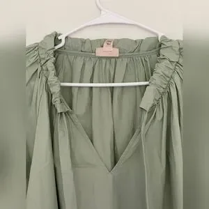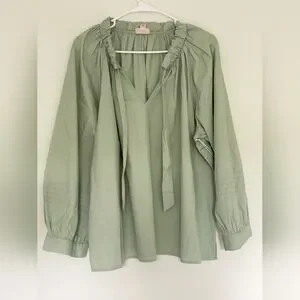 a.n.a Sage Green Relaxed Tie Front Blouse with Cuffed Sleeves
