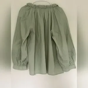 This a.n.a blouse combines a relaxed fit with stylish features like a tie front and ruched details. The long cuffed sleeves and bib collar enhance its sophisticated yet comfortable design. Ideal for a casual outing, this green top offers a chic and effortless look.