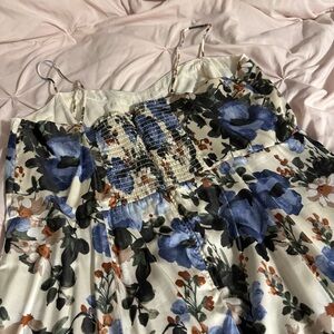 Elegant midi dress with blue floral pattern. Has adjustable spaghetti straps. Perfect for any occasion. Washed but never worn!