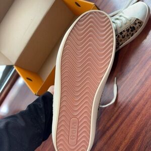 Never worn - Experience the perfect blend of style and comfort with Gola's high-top sneakers, featuring a striking brown and black color scheme. These sneakers boast a classic design with a modern twist, highlighted by a distinctive leopard print pattern. Ideal for making a bold fashion statement, they come with white laces and a durable rubber sole for everyday wear.