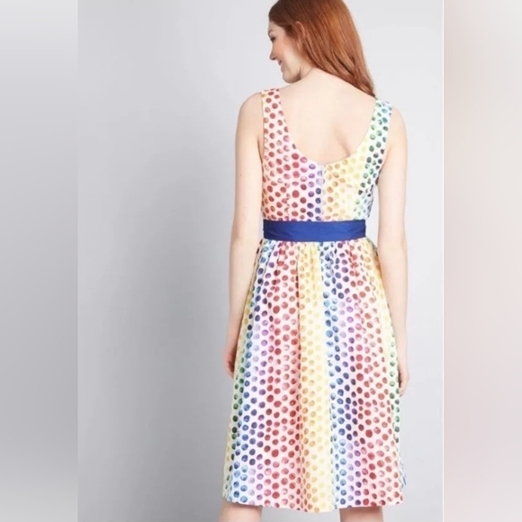 this super super cute rainbow dress is by the quality brand Modcloth!