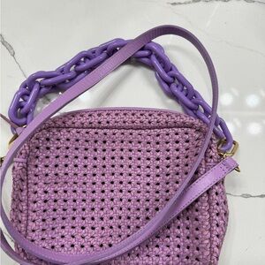 Gently used Clare V midi sac in color lilac with Clare V resin lilac strap.