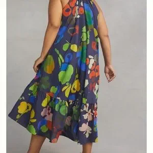 Vibrant floral maxi dress. Halter neckline. Flowing silhouette. Perfect for any occasion.