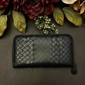 Bottega Veneta Black Imperatore Long Wallet Zipper Calf Leather
