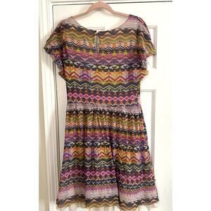 Weston Wear ANTHROPOLOGIE Caraz Aztec Cap Sleeve Dress Ruffle Petticoat Sz XL