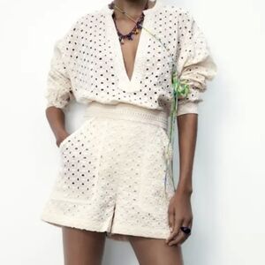 Zara cream beige shorts with cutwork embroidery size Medium Bohemian Cottagecore