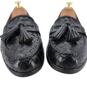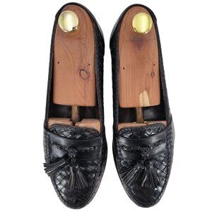 Vintage Bragano Cole Haan Italy Black Woven Leather Tassel Loafer Dress Shoes 8M