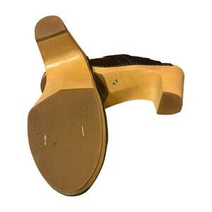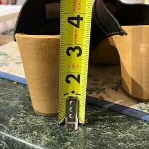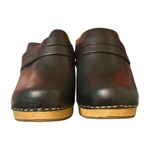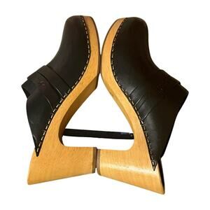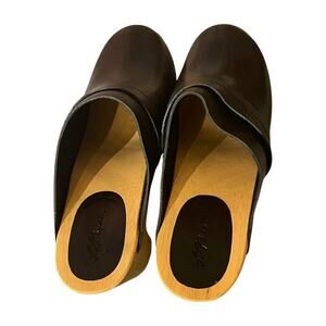 Step into retro-inspired style with these L.L. Bean wooden sole clogs in size 7. Featuring a sleek black leather upper, stitched details, and a sculptural wood platform heel measuring approximately 3.25 inches. These slip-on clogs blend classic craftsmanship with a modern edge. Perfect for cottagecore, boho, and minimalist looks. Pair with wide-leg jeans, midi skirts, or layered fall outfits for that effortless Scandi or grandpa core vibe. Excellent preowned condition with minimal wear. Embossed L.L. Bean branding adds a premium touch. A rare and timeless staple for year-round wear. Style meets comfort in these durable, statement-making shoes.