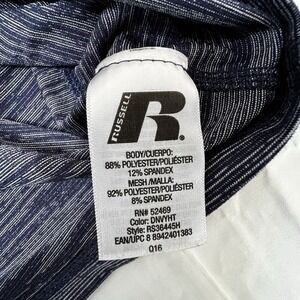 The Russell Training Fit Blue Top in size Small is a stylish and versatile long sleeve 1/4 zip shirt perfect for sports enthusiasts. Made from a blend of polyester and spandex, this knit shirt offers a comfortable athletic fit. The solid blue color and collared neckline add a touch of classic style, while the machine washable fabric makes it easy to care for. Whether you're hitting the gym or just running errands, this Russell shirt is a great choice for any season.