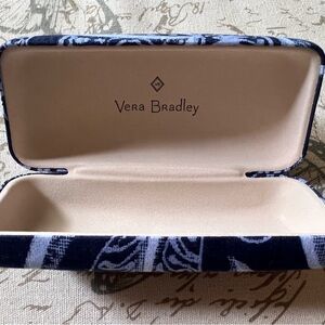 Elegant eyeglass case by Vera Bradley. Features a navy and cream pattern. Ideal for keeping glasses safe.