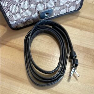 This Coach crossbody bag showcases a sophisticated blend of brown and black tones, embodying the brand's signature style. Its structured design offers both elegance and practicality, making it a versatile accessory for any occasion. The bag's sleek silhouette and premium craftsmanship ensure it stands out in any setting.