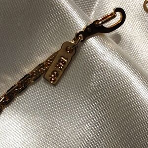 This elegant beautiful 18 kt gold plated bracelet is absolutely stunning. The intricate details in the chain is not a style that I have seen before. I love the chain it looks so pretty. It measures 7 in length maybe a little bit more.