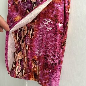 Cache Y2K Snake Python Ruched Faux Wrap V-Neck Sheath Dress Pink Animal Print Mobwife Size XS