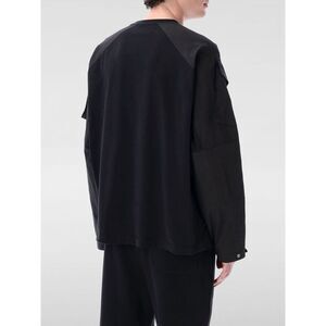 This Peacemaker shirt is a longsleeve pullover sweater featuring a unique design The cotton jersey base provides comfort while the contrasting panels of cotton canvas on the shoulders and sleeves add a touch of modern flair The relaxed fit offers comfort and ease of movement The cuffs are finished with subtle button closures Suitable for casual wear.