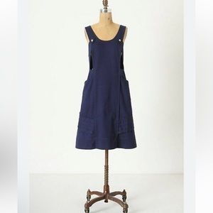 Anthropologie Meadow Rue Women’s Madison Jumper Dress Navy Linen Cotton Cut Out