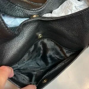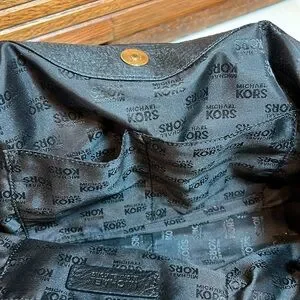 INTERIOR: I love the interior of this bag! It is super functional. One main compartment with a leather pull zip pocket and 2 slip pockets on one sidewall. The opposite sidewall has 2 additional slip pockets. Clean, stain free, black MK signature lining. No smells.