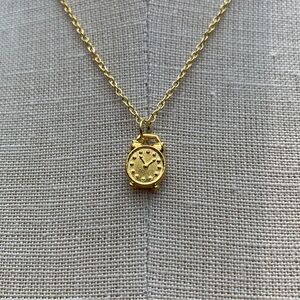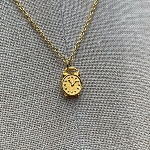 NWT Sterling Silver Plated Gold Tone Chain & Alarm Clock Charm Necklace