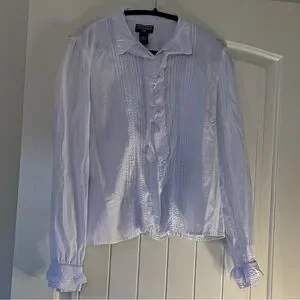 Elegant white blouse with ruffled details. Perfect for formal or casual- Effortless Elegance: The Ralph Lauren Polo Jeans Co. Blouse