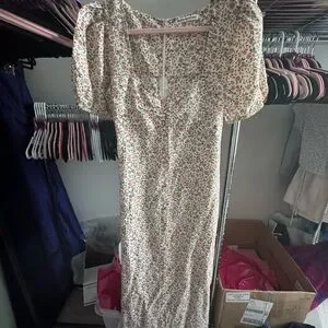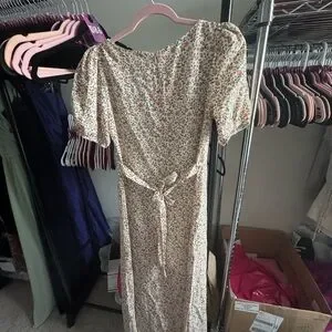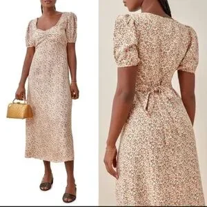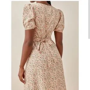 Reformation Kelby Floral Summer Dress Pink Cream Short Sleeve size small