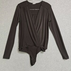 Free People Intimately Womens Chocolate Coquette Wrap Drape Long Sleeve Thong Bodysuit Surplice Preloved condition, No visible stains or holes.
