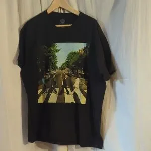 Celebrate the legendary music of The Beatles with this black short sleeve tee, featuring the iconic Abbey Road album cover. The classic design showcases the famous image of the band members crossing the zebra crossing, making it a must-have for any fan. Crafted for comfort and style, this tee is perfect for casual outings and music events.
