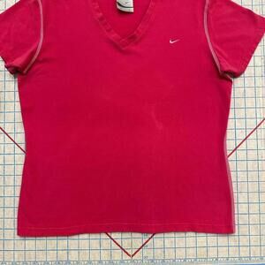 Vintage Nike Shirt XL Pink Short Sleeve V Neck Swoosh Embroidered Y2K
