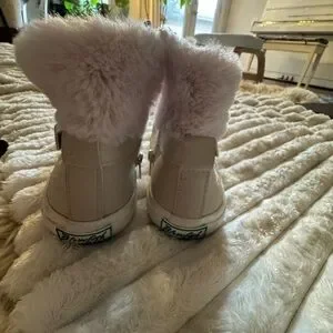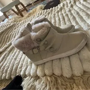 Step into comfort and style with these Blowfish cream boots, featuring a plush lining for added warmth. The sleek design and neutral color make them a versatile addition to any wardrobe, perfect for casual outings or cozy days indoors.