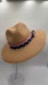 Chic tan straw hat featuring a decorative ribbon with star pattern. Perfect for sunny days.
