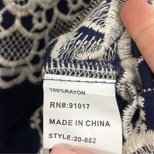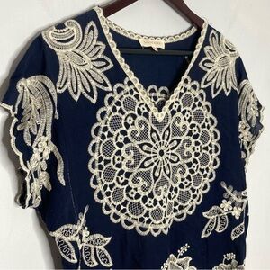 Solitaire Size Medium Embroidered Navy Scalloped Blouse Boho