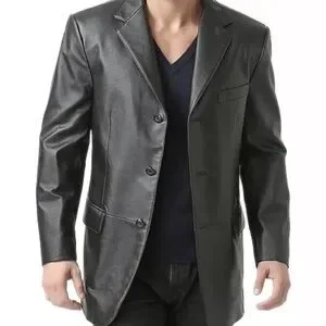 Elevate your style with this sleek black men’s genuine leather blazer from BGSD.