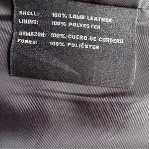 Shell is 100% Lamb leather. Lining is 100% polyester.