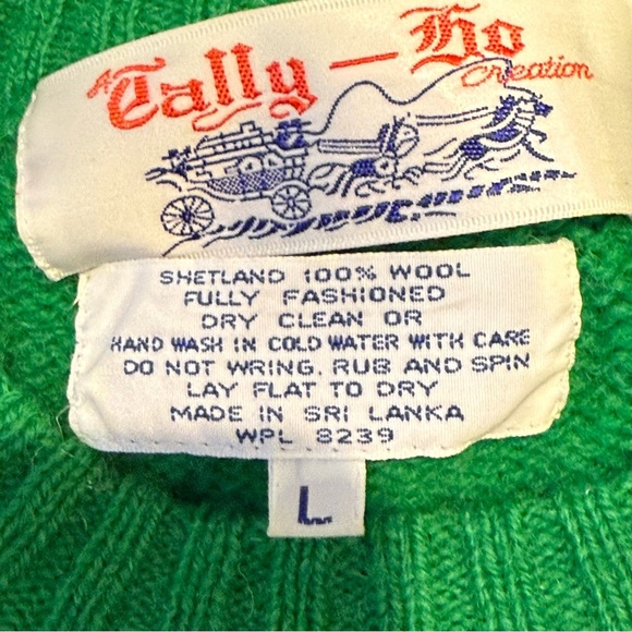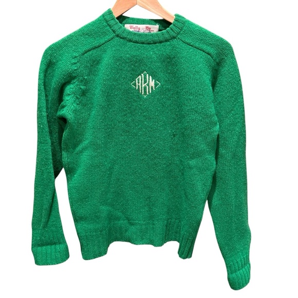 Vintage Tally Ho Women's Sweater 100% Wool Monogrammed Green Sweater Size Large