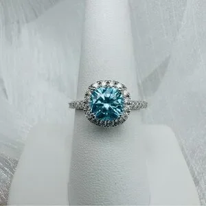 3.87 CT Moissanite Diamond Blue w Pavé Eternity Band