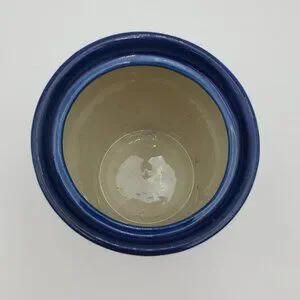 Polish Pottery Peacock Leaves Jar with Lid. Ceramika Artystyczna Sugar Bowl, Small Lidded Canister. 5.5" tall overall, 4.25" without the lid, 3.5" across the top.