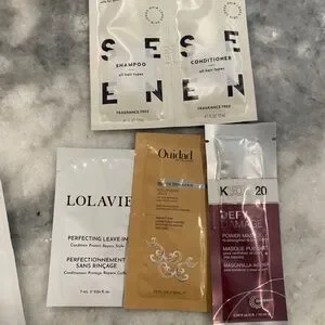 I also noticed while taking pics that the Brigeo Color Me Brilliant shampoo has a teeny bit of dried residue on it. The packet does not appear to have a hole in it so idk what that's all about (see last photo).