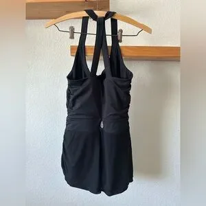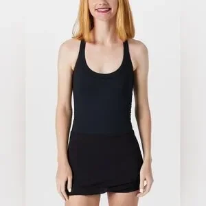 Whether you're on the court or on the go, the FP Movement Little Bit Love Skortsie will give you the style advantage. It features a scoop neckline, strappy back detail, supportive double-layer compression bodice, side ruching, an integrated shortie, moisture wicking comfort and an FP Movement logo at back waist.