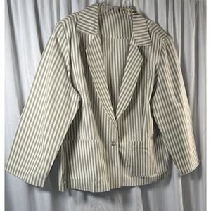 One Button Striped Linen Blend Blazer, Taupe & Ivory, Sz: 22W, 82-28