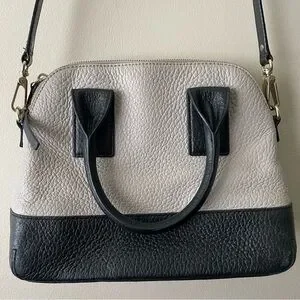 KATE SPADE Two-Tone Black and Grey Leather Medium Handbag with Removable Strap