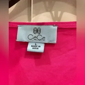 NWT CeCe Pink V-Neck Puff Sleeve Tiered Ruffled Maxi Dress Sz L