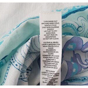 Chico's Lightweight Turquoise & White 3/4 Roll-Tab Sleeve Embellished V-Neck Boho Print Tunic Top with Tassels - Chico's Size 1
