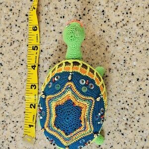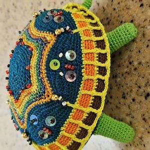 adorable turtle pincushion with one eyeball missing