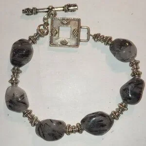 This set includes a Necklace & Bracelet made with Sterling Silver and Free-Formed Tourmalinated Quartz.