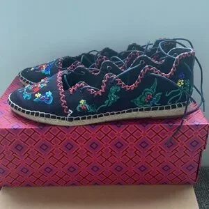 New Tory Burch Sonoma Lace up Embroidered Gillie Espadrille size 7